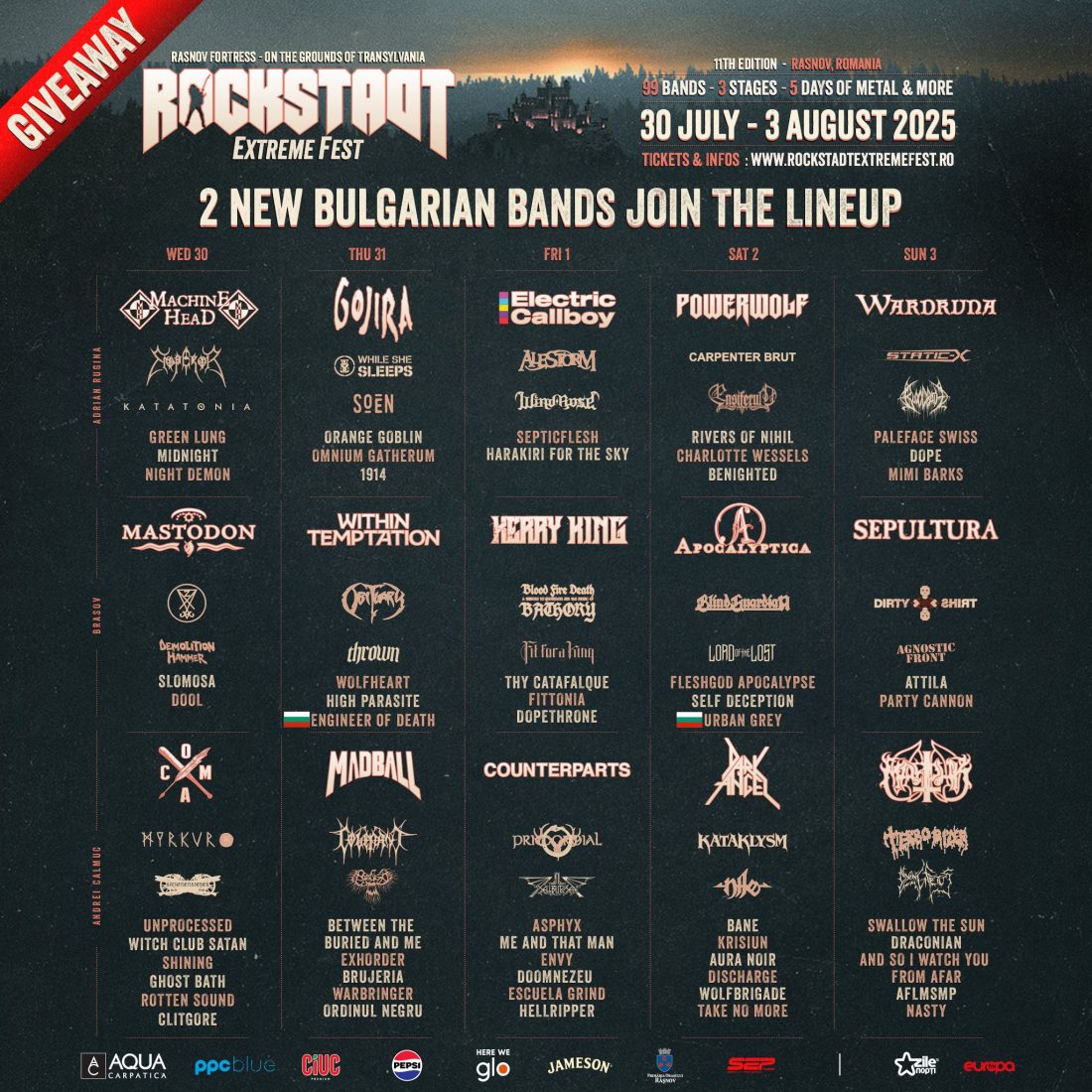 Rockstadt Extreme Fest 2025, 30.07 – 03.08.2025, Râșnov